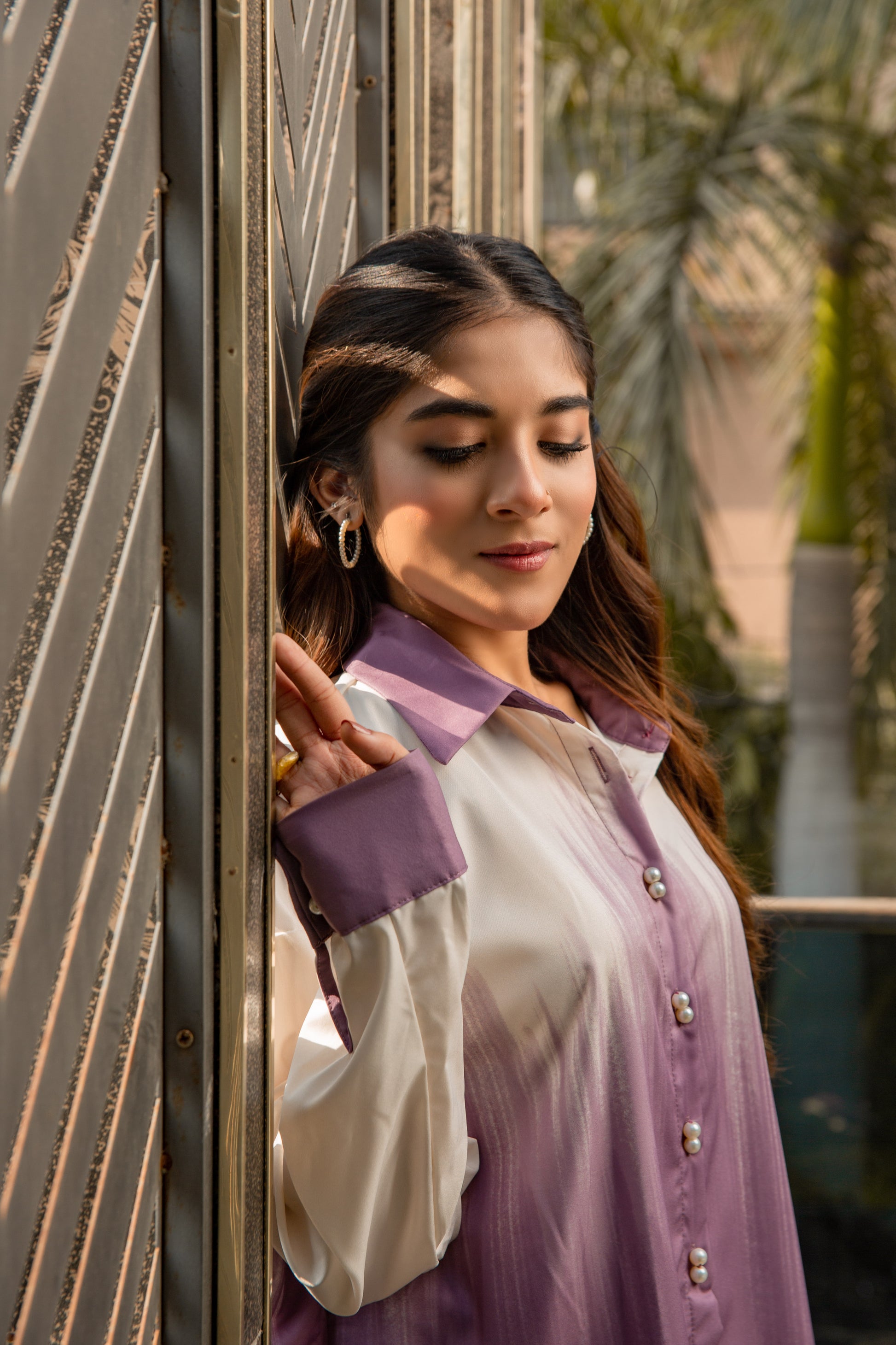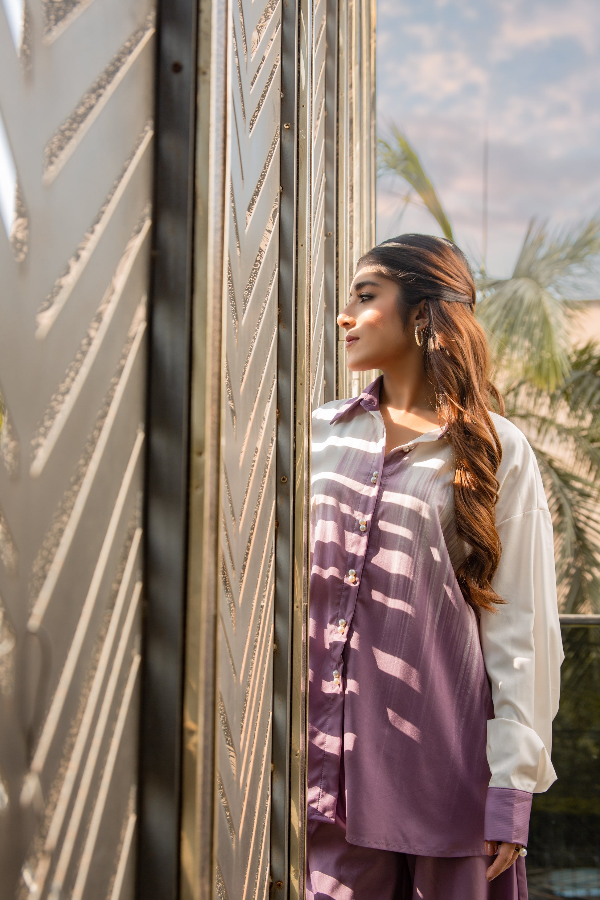 Introducing the Elegant Code - A Stunning two-piece Shirt and Pant set crafted from luxurious stainless fabric. This Sleek Cord set intricate button details and modern style, Perfect for formal events or evening wear.